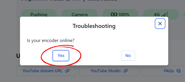 1) Log into FrogBox Go and navigate to Manage Stream. Under your preview, click the Diagnostics bar.