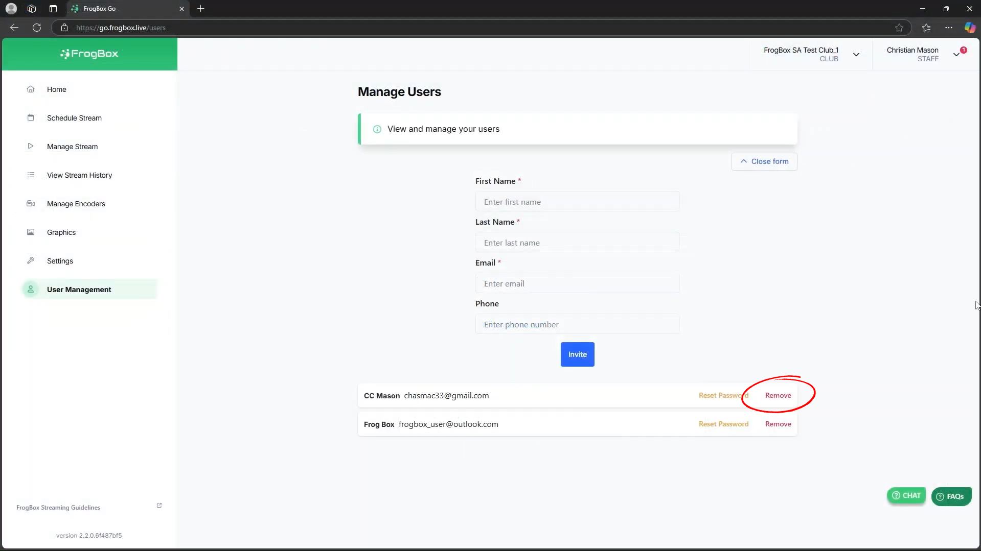 A welcome email with the subject "Your FrogBox credentials" will be sent to the user automatically.