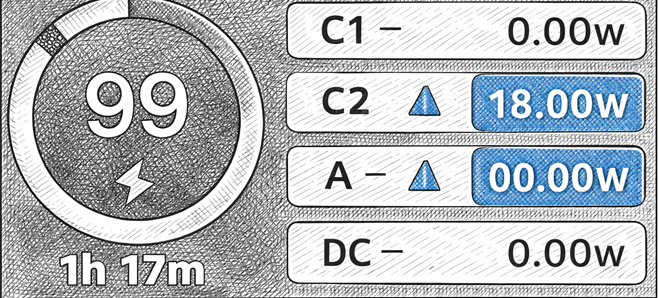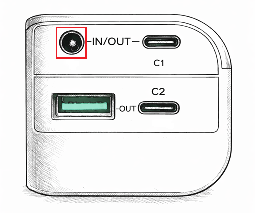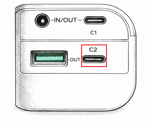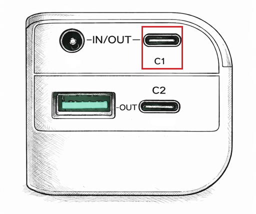 Step 1: Plug the provided USB-C cable into the C1 Port of the power bank (see figure below) and connect the other end to a power source.